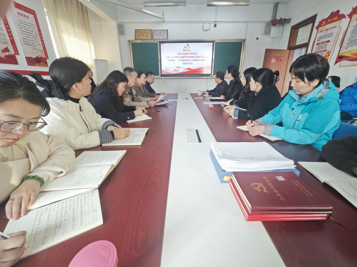 10月28日,经济与信息技术系党总支以“学习贯彻《中国共产党纪律处分条例》强化纪律作风建设”“学习贯彻党的二十届四中全会精神”为主题开展10月份主题党日活动,活动由党总支书记孙中芹主持,全体党员参加。