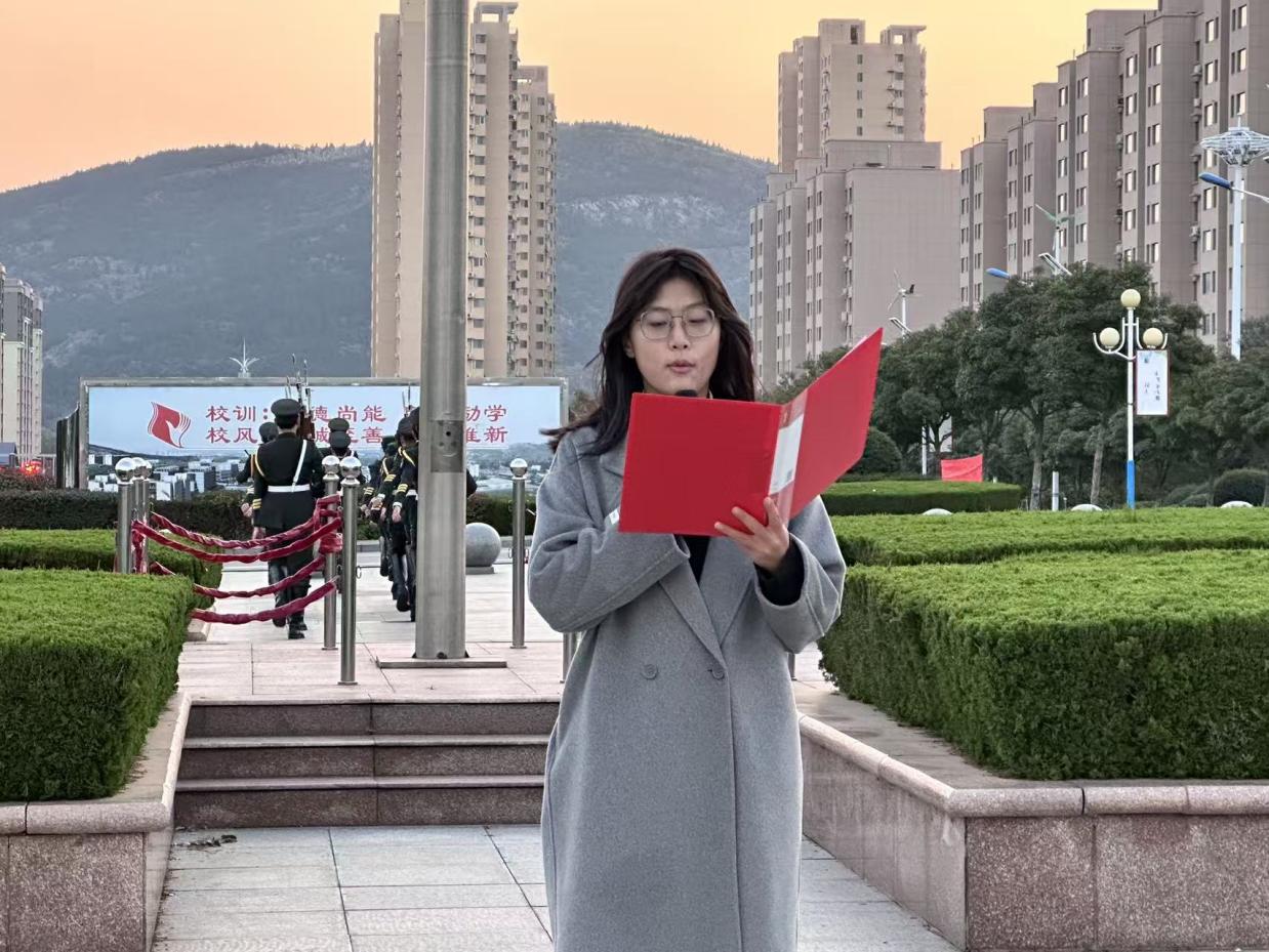 升旗仪式期间,赵佳怡同学围绕青春与国旗、青春与担当、青春与行动展开主题演讲,通过生动事例、切身体会与情感共鸣等形式,系统阐述了青春在国旗下的深刻意义。展现了青春在成长里刻下的印记,体现了青年学子为未来扛起责任、积蓄力量的精神风貌。