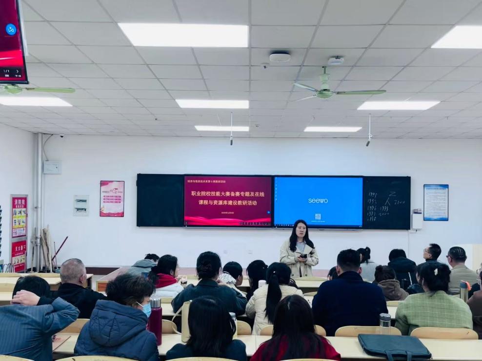 为精准对接第十八届山东省职业院校技能大赛的新标准与新要求,系统提升教师在线教学能力与课程资源建设水平,11月4日,经济与信息技术系在各大赛备赛实训室及教学楼A202阶梯教室同步开展“职业院校技能大赛备赛专题及在线课程与资源库建设”教研活动。活动由系教学管理办公室主任张晶主持,大数据技术专业群教研室主任王伟主讲,系全体教师参与。
